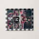 Black and White Plaid 5 Photo with Monogram Jigsaw Puzzle