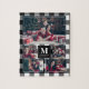 Black and White Plaid 5 Photo with Monogram jigsaw puzzle