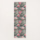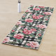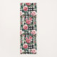 Black and White Plaid With Leafy Pink Camellias Yoga Mat