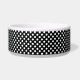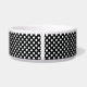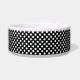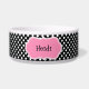Stylish dog food dish done with a black and white polka dot band, around the dish, and a pink decorative text area, in the middle for your pet's name. Fun black custom text allows you to customise with your pet's name, for a personalised bowl your dog can be proud of. Makes a great gift idea.