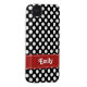 This custom black and white polka dot iPhone 4 and 4s Case Mate Barely There cover with a multi dot pattern can be personalised with your name on the pink stitched ribbon design. Accessorise your favourite gadget with this preppy and modern polkadot iPhone 4th generation case. This 4th gen accessory makes a cute and stylish gift for women, a teen or any girly girl. This universal case for her fits iPhone 4/4s Verizon, Sprint and AT&T phones. Artwork © Chrissy H. Studios, LLC. All Rights Reserved.