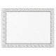 This tablecloth is shown in a black and white polka dots border print on bottom edge.