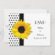 The text on this chic and classy retro black and white polka dot yellow sunflower wedding RSVP reply card is fully customisable. To change it use the personalise option. For more extensive text changes, such as changes to the font, font colour, or text layout, use the customise option. This sunflower flower and polka dots floral wedding response card could be used for other special occasions. Really it's up to you. All you need to do is change the text. NOTE: This is a flat printed design without any raised or 3D embellishments. This is part of a themed stationery set.