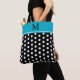 Black and White Polka Dot With Azure Blue Monogram Tote Bag