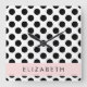 Black and White Polka Dots, Dotted, Your Name Square Wall Clock