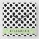 Black and White Polka Dots, Dotted, Your Name Square Wall Clock