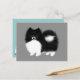 Adorable Black and White Pomeranian. Cute cartoon dog postcard.
