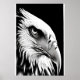 Black and white portrait of a cute and adorable eagle on a black background. This is a AI generated art.