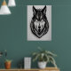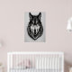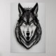 Black and white portrait of a cute and adorable wolf on a grey background. This is a AI generated art.