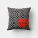This pillow features a black and white graphic pattern with a red heart. The text inside the heart reads "My Valentine" and the text can be customised with your own message. You an also remove the text and the heart. This design is on the front and back of the pillow.