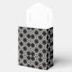 This elegant design makes a perfect favour box for Valentine's Day or any special occasion. Featuring a black and white lace-like patter, this favour box has a red heart on the front flap. xThe text inside the heart reads "Be My Valentine" and it can be customised with your own message.