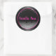 Make a lasting impression with this elegant and modern product label design featuring a black and white colour gradient with a luminous shimmery pink decor frame. Matching an outstanding font with shadow effect.