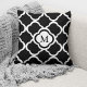 Black And White Quatrefoil Pattern Custom Monogram Throw Pillow.