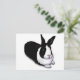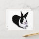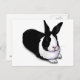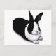 A graphic of an adorable black and white rabbit with a soft pink nose and wisps of fur. A great image for rabbit lovers, children and those that are kids at heart.