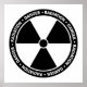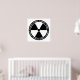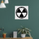 White poster with black radiation symbol surrounded by "Danger - Radiation" in repeating text.
