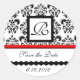 BLACK AND WHITE RED DAMASK MONOGRAM,Save The Date Classic Round Sticker
