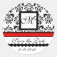 BLACK AND WHITE RED DAMASK MONOGRAM,Save The Date Classic Round Sticker