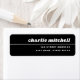 Black or custom colour return address labels with a thin border between your name and return address and the text aligned to the right. Your name and surname is in a bold, retro font. Fonts and colours can be customised with the design tool.