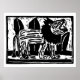 Black and White Roaring Lion Lino Cut Poster