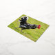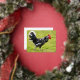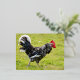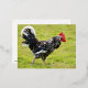 Closeup of black and white rooster (Gallus) view of profile and walking on grass