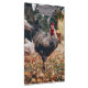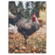 Featuring a large black and white rooster hanging around the farm with his two white hen friends. Nothing like scrounging around for some bugs on a cool autumn day with colourful leaves cascading down to the ground in an amazing display.