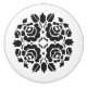 A black and white graphic rose design is featured on this round drawer knob.