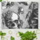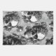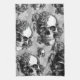 Black and white rockabilly rose skull pattern from hand drawn illustration placed on subtle grey damask background. Six ways till Sunday.