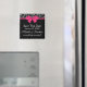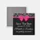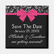 Announce your wedding date with this save the date refrigerator magnet that features an elegant black and white rose pattern, a hot pink bow and white text on a black background.