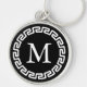 A black background paired with a white round Greek key border for your monogram.