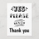 Yes please and thank you - fun, quirky and unique typography black and white RSVP budget card, which you can use for any occasion = birthday RSVP, wedding RSVP, or any party acceptance.