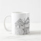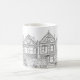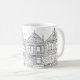 Hand-drawn Painted Ladies houses of San Francisco in black and white on this perfect coffee mug for your cup of jo.