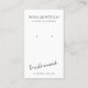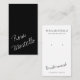 Elegant and simple black and white earring display card. The template is written in a script font on the front for you to place your first and last name. The back is in a serif style font and you can edit the text to suit your business. Replace with your business name and specialism and edit the greeting and product type if prefered. Perfect for artisan and designers who wish for a simple style to package their handmade jewellery commissions.