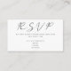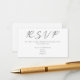 This minimalist RSVP enclosure card features a crisp white background with elegant black and grey script for a clean, modern look. The bold "RSVP" headline keeps the purpose clear, while the uncluttered layout makes it easy to add essential details like contact name, number, email, venue, and response instructions on the reverse. All wording is fully editable to match a black and white wedding suite or any contemporary celebration theme.