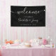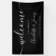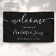 This chic black and white signature script wedding welcome banner card can be personalised with your names and special date. Designed by Thisisnotme©