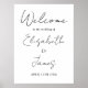 This black and white minimalist elegant script wedding welcome sign can be personalised with your information in chic typography. Designed by Thisisnotme©