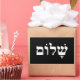 Simple text design saying Shalom in Hebrew. White font on black background. You can change the background colour.