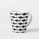 Black and white shark fish pattern café Latte Mug. Cool Birthday gift idea for fisher, shark lover, deep sea diver, scuba diver, swimmer, sailor, skipper, boat captain, sailing enthusiast, retiree, collector etc. Customise background colours. Sea life theme cup for men, women and kids. Custom 11 ounce drink ware for home or office. Small and large size available.