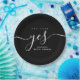 Elevate your bridal shower or engagement party with these elegant minimalist black and white paper plates. Featuring the stylish phrase "She Said Yes" in modern script, these plates are perfect for adding a touch of sophistication to any celebration. Their sleek and simple design makes them ideal for couples who love timeless, understated decor that blends effortlessly with any theme.