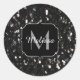Black and white shiny glitter sparkles Monogram Classic Round Sticker