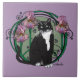 Black and White Short-Haired Cat with Irises Tile