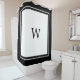 Black and White Shower Curtain. If you're looking for a modern, monogrammed shower curtain that exudes class and sophistication, then you'll love our elegant black and white shower curtain. Featuring a classic, stylish double border and monogram, this eye-catching curtain will look great in any bathroom.