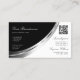 Black and White Silver Decor with Logo & QR-Code Business Card