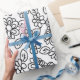 Black and white simple floral drawing wrapping paper