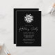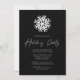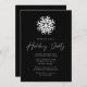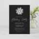 Modern holiday party invitations featuring a white snowflake at the top of the design with a festive black background. "Holiday Party" is displayed in a white handwritten script. Personalize the snowflake holiday party invitations with your party details.