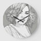 black and white sketch wall clock