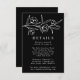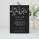 Elegant floral wedding details cards featuring white sketched flowers and leaves near the top of the design with a black background. Personalise the botanical wedding details cards with your wedding details below in classic white lettering. Designed to coordinate with our Sketched Floral wedding collection.