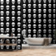 A repeating pattern of white skulls on a black background bringing an eerie Halloween look to any space. Ideal for accent walls, party backdrops or creative DIY projects where a simple gothic style stands out.