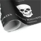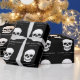 White skulls pattern on a black background colour with two personalizable text areas. The top reads “Happy Halloween” while the second lets you add a name or short message. A fun way to wrap Halloween gifts, party favours or treat bags with a simple spooky style.