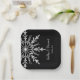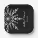 Personalize the pretty Black and White Snowflakes Winter Wedding Paper Plates with the names of the bride and groom and date of their December, January or February winter wonderland theme bridal shower or marriage reception. These elegant custom wintery wedding disposable plates feature an intricate white snowflake design with a black background.