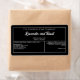A label for soap or cosmetics products. Features space for your company name, ingredients, business information, and more.